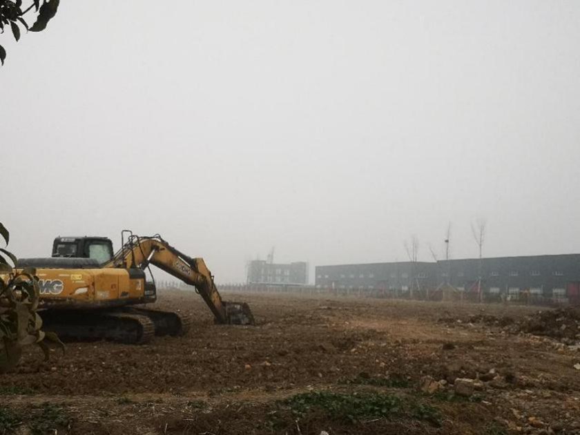 1月28日,东方久乐汽车电子股份有限公司施工现场,挖机正在平整土地。运粮湖管理区施工方介绍说,二期项目工程已基本完成土方回填,共投资223万元,回填土方4.5万方。据悉,久乐电子一期工程各3200平米