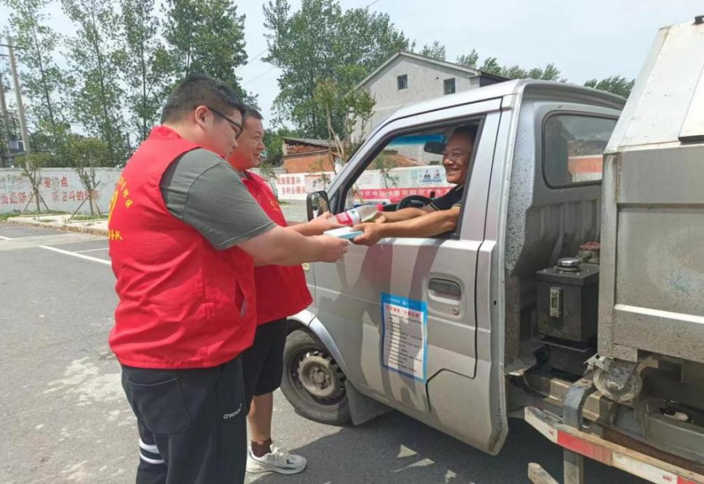 7月13日,运粮湖管理区友爱社区新时代文明实践站开展“夏日送清凉,关怀沁人心”关爱户外劳动者志愿服务活动,为在一线辛苦劳作的劳动者送去关怀。“天气炎热,要注意身体。”“这是藿香正气口服液,可以用来缓解