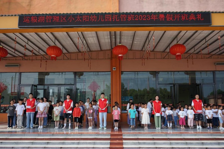 为解决暑期学生尤其是留守儿童“看护难、辅导难”等问题,7月1日,运粮湖管理区暑期托管班在小太阳幼儿园正式开班。托管班有班主任3人、专业辅导老师5人、师范类在校大学生助教5人和志愿者若干,共同为40余名